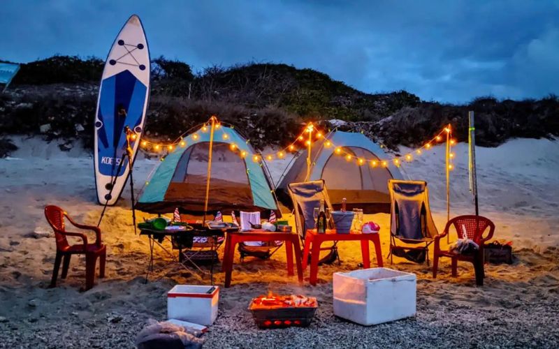 Nếu bạn muốn tận hưởng một đêm đáng nhớ giữa thiên nhiên, hãy trải nghiệm cắm trại tại Hoa Nắng Camping. Hòa mình vào bầu không khí yên bình của biển đêm, đốt lửa trại, ca hát, thưởng thức BBQ và ngắm sao trời – một trải nghiệm mà bất kỳ ai cũng nên thử một lần trong đời!