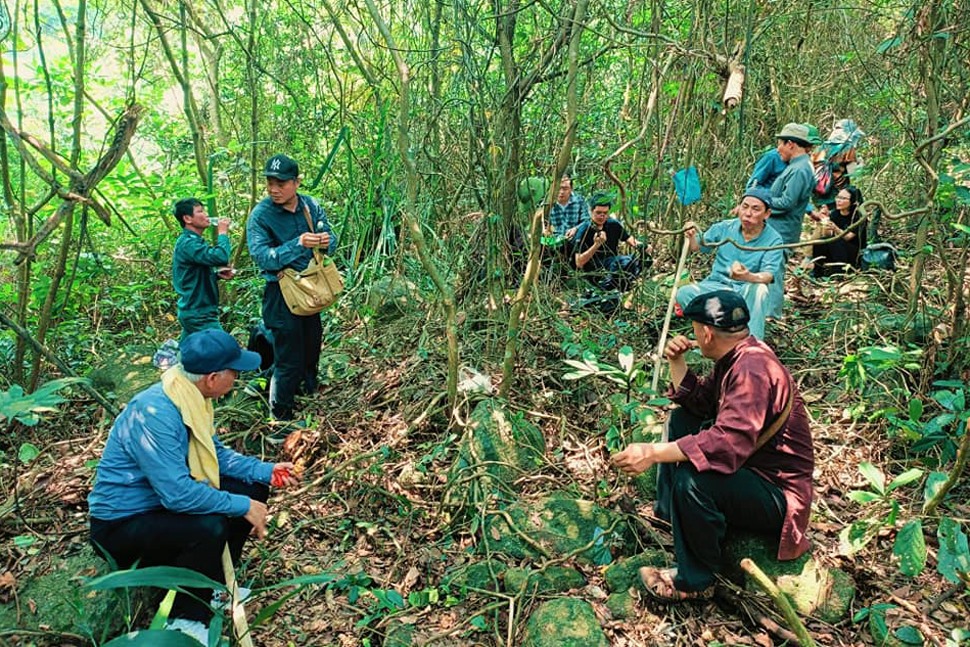 Đoàn khảo sát tìm kiếm dấu tích chứng minh chùa Quỳnh Viên là nơi phát tích Phật giáo Việt Nam. Ảnh: Khắc Mai.