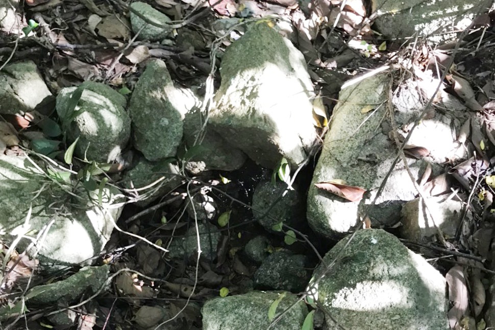 Dấu tích những tảng đá ghép lại như một nền móng một công trình cũ đã rêu phong, nghi ngờ cách đây hàng ngàn năm, trên núi Nam Giới đã có con người. Ảnh: Trần Tuấn