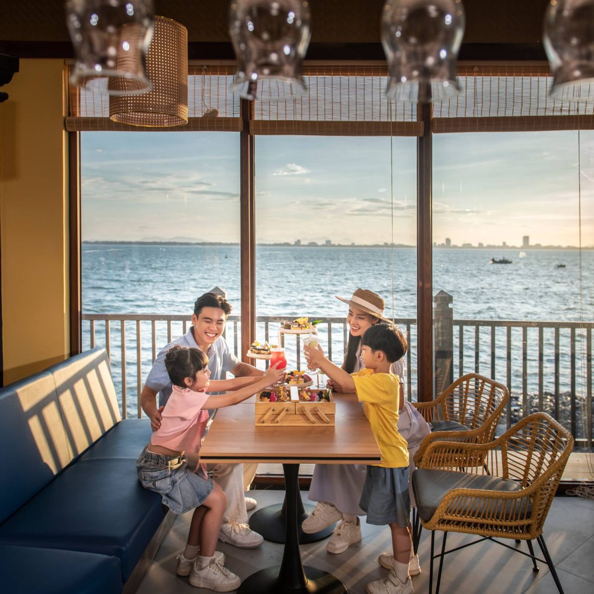 Sau những giờ phút vui chơi thỏa thích, hãy tận hưởng bữa tiệc ẩm thực đa dạng và hấp dẫn tại Tổ hợp nhà hàng & Beach Club của VinWonders Cửa Hội Nghệ An. Với diện tích lên đến 4.200m², nơi đây mang đến một thế giới ẩm thực phong phú, đáp ứng mọi khẩu vị và sở thích của du khách: