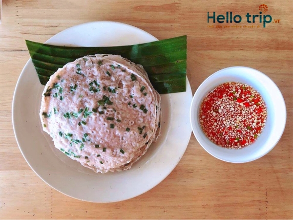 Món bánh xèo nhìn khá đơn giản nhưng nấu cũng rất kì công này rất được lòng các du khách khi đến đây. “ Xèo xèo” là tiếng kêu khi người ta đổ bánh vào chảo và từ đó ra đời tên gọi bánh xèo. Bột để làm bánh xèo thường được chọn từ các loại gạo ngon, xay nhuyễn, thêm nước khuấy đều thành dạng lỏng sền sệt. Người ta có thể cho thêm một ít bột bắp để tăng độ giòn và thơm cho bánh. Cho thêm ít bột nghệ để bánh có màu sắc đẹp hơn.