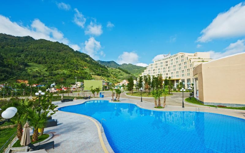 Buổi sáng, du khách có thể mở cửa đón nắng sớm và sương mù còn vương trên đồi, buổi chiều thư giãn tại hồ bơi bốn mùa hoặc dạo bộ trong khu vườn đầy hoa. Resort còn có spa, phòng gym, khu vui chơi trẻ em, karaoke và nhà hàng lớn phục vụ cả món Á và Âu. Với giá từ 599.000 VNĐ/đêm, Thảo Nguyên Mộc Châu Resort là nơi lý tưởng để nghỉ dưỡng cùng gia đình hoặc tận hưởng kỳ nghỉ lãng mạn.