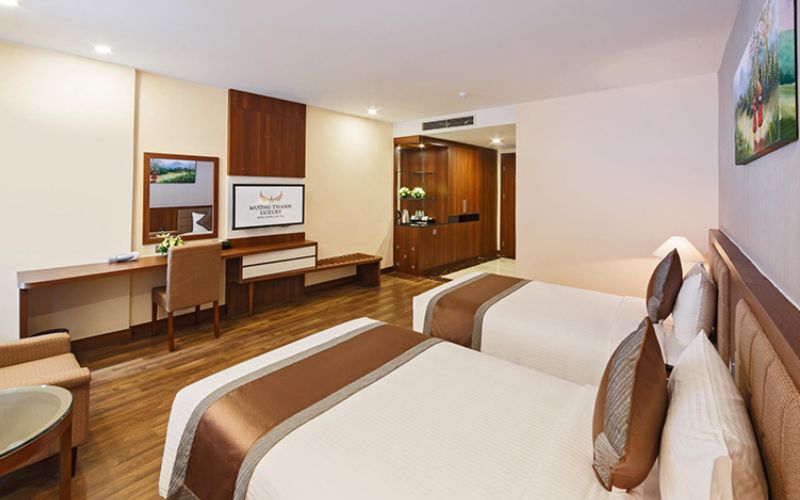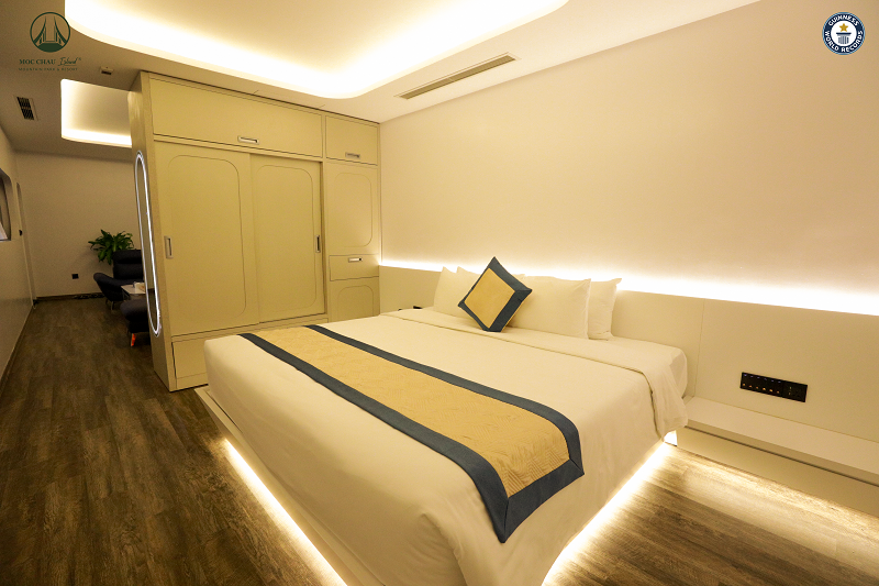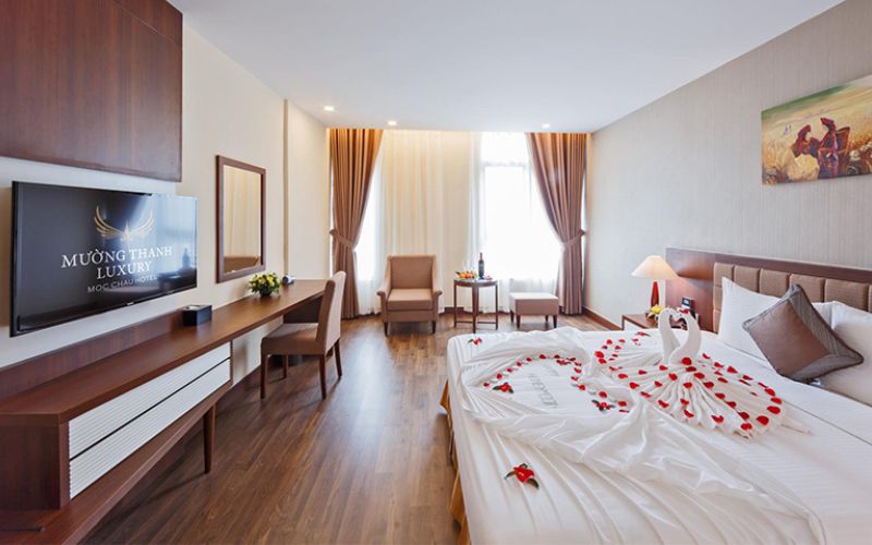 Cùng hệ thống phòng đa dạng, từ Deluxe King, Deluxe Twin, Executive Suite với diện tích từ 35m2 – 70m2, Mường Thanh Holiday là lựa chọn lý tưởng cho những ai muốn kết hợp nghỉ dưỡng cao cấp và khám phá Mộc Châu một cách thuận tiện.