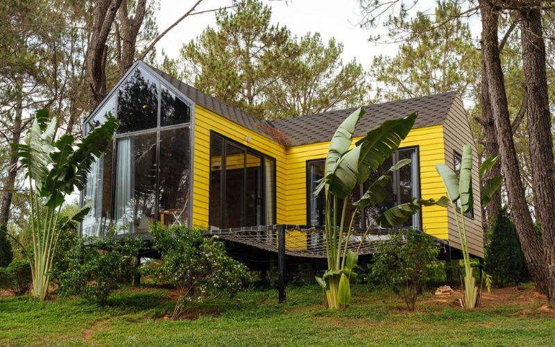 Mỗi phòng đều có cửa sổ lớn đón trọn ánh sáng và mở ra khung cảnh xanh mướt. Bước vào đây, du khách sẽ cảm nhận sự ấm cúng, gần gũi như một ngôi nhà giữa rừng nhưng vẫn đầy đủ tiện nghi để kỳ nghỉ trọn vẹn.