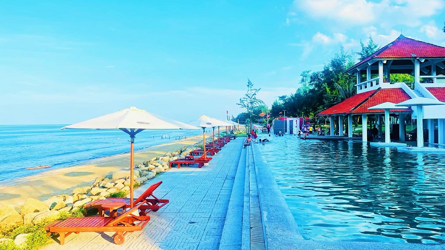 Resort này sở hữu bãi biển riêng tuyệt đẹp, cát trắng trải dài