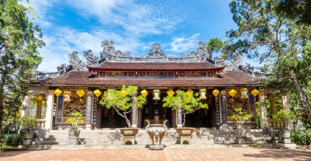 Tiếp theo, hướng dẫn viên đưa đoàn thăm quan Chùa Từ Hiếu - một ngôi chùa cổ kính, mang đậm nét kiến trúc xưa cũ của cố đô Huế.