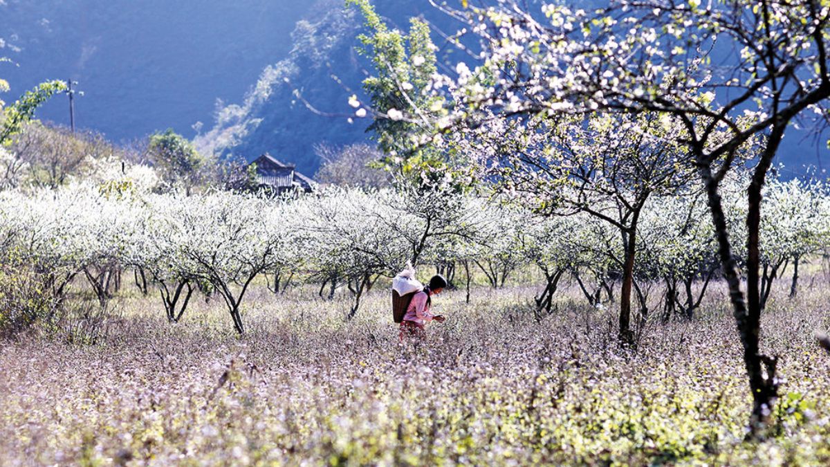 - Mùa xuân (tháng 1 - 3): Bạn sẽ ngỡ ngàng trước vẻ đẹp tinh khôi của hoa mận và hoa đào nở trắng cả triền đồi.