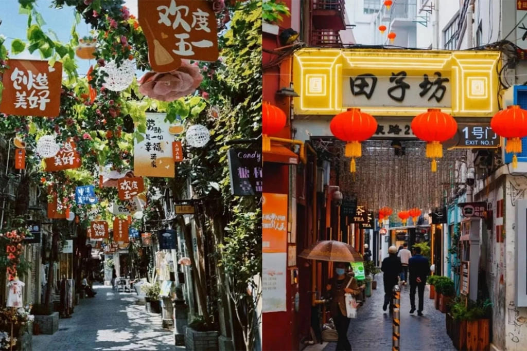 Buổi chiều, đoàn tham quan Điền Tử Phường - một khu vực sống động với những con hẻm nhỏ nằm san sát hầu như giữ nguyên dáng dấp mang âm hưởng châu Âu của một khu tô giới Pháp xưa (nơi nằm trong sự quản lý của thực dân Pháp từ cuối thế kỷ 19 tới giữa thế kỷ 20). Vì vậy, nơi này trở thành một trong những khu phố lịch sử nhất của Thượng Hải với những ngôi nhà cũ kỹ nhưng sở hữu lối kiến trúc cổ điển, mang đến vẻ sang trọng, quyến rũ theo thời gian.